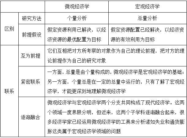 考点四:微观经济学与宏观经济学 ★★★