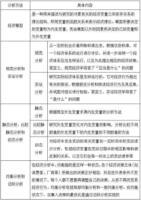 考点二:经济学的分析方法(见表1-2) ★★★★
