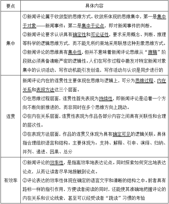 考点三:新闻评论的思维和表达的特点(见表1-3) ★★