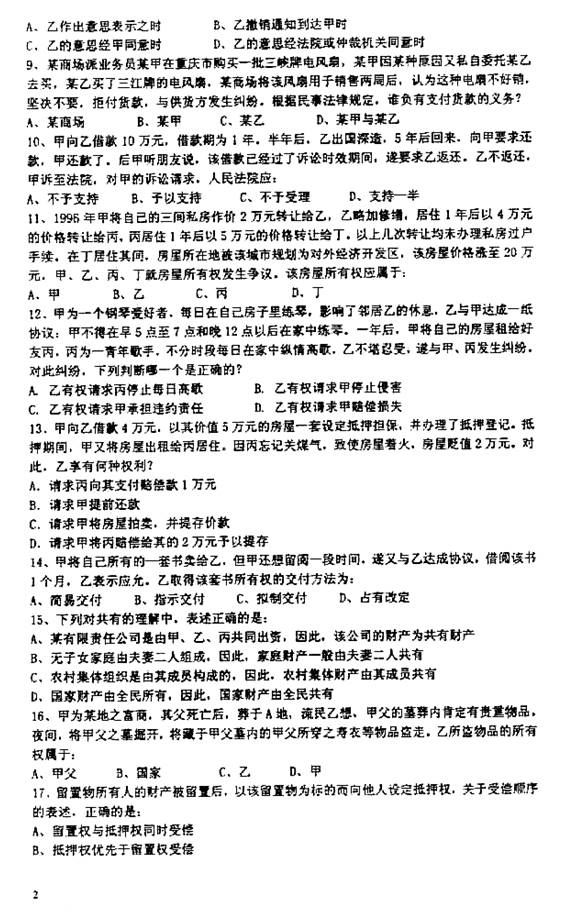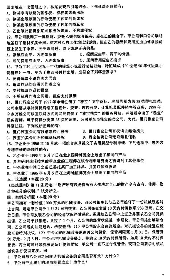 1. 魏振瀛《民法》(第9版)考研真题和典型题