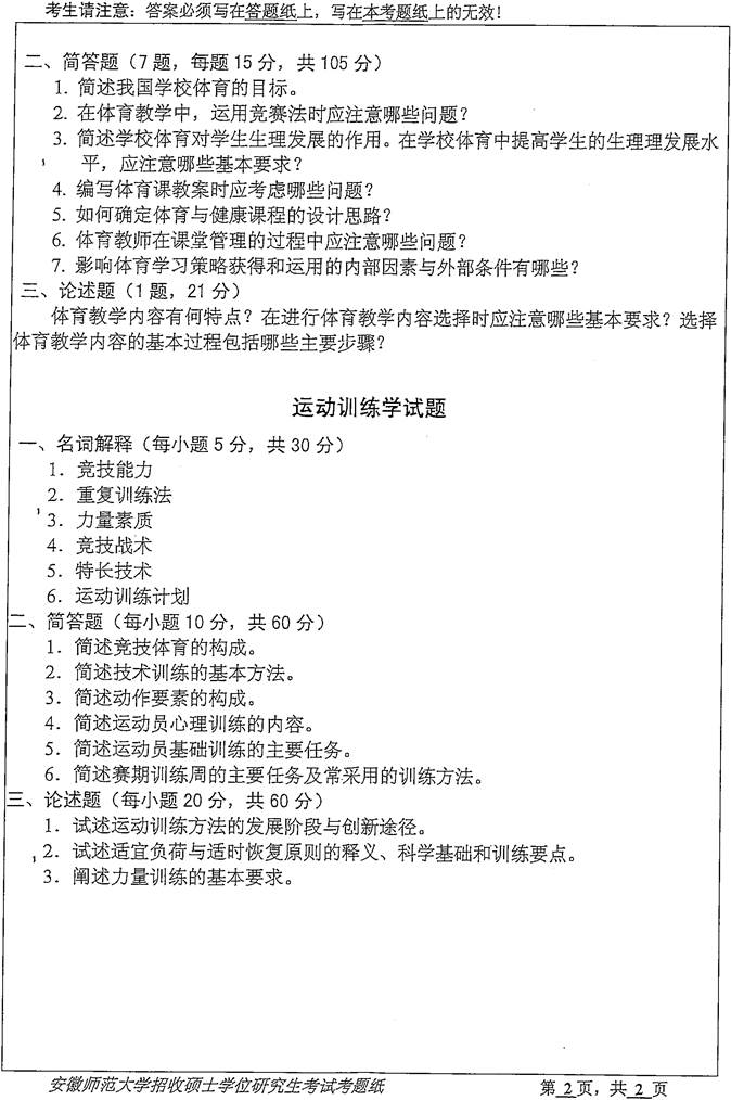 1.安徽师范大学346体育综合[专业硕士]考研真题