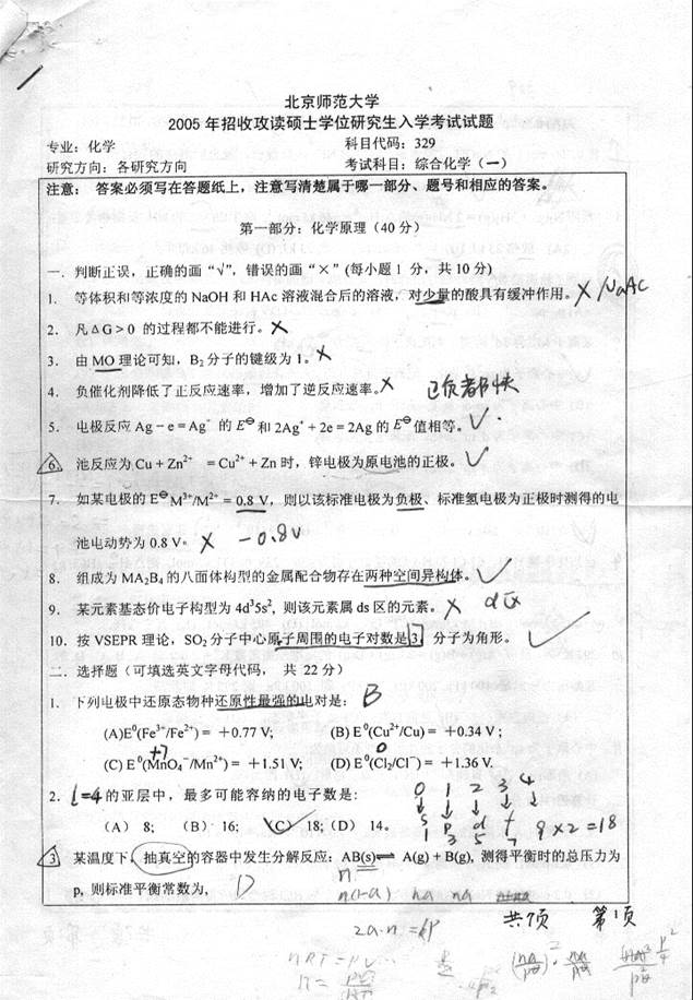 1. 北京师范大学化学学院《综合化学一(化学原理、物理化学、结构化学)》历年考研真题汇总