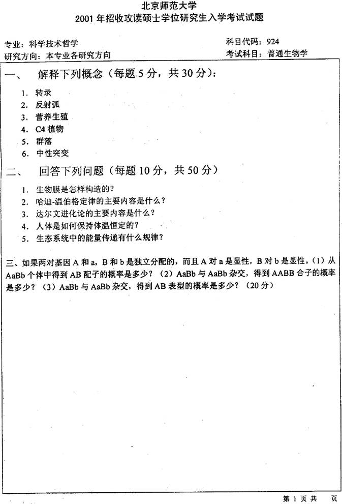 1. 北京师范大学生命科学学院《普通生物学》历年考研真题汇总