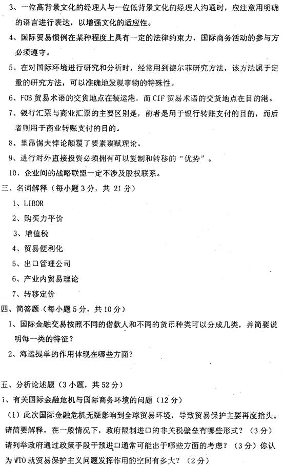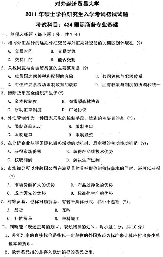 2011年对外经济贸易大学国际经济贸易学院《434国际商务专业基础》考研真题