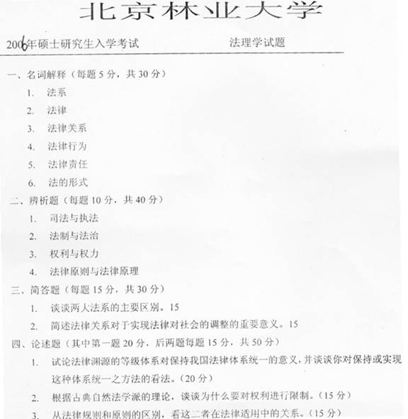1. 北京林业大学人文学院《704法理学》历年考研真题汇总