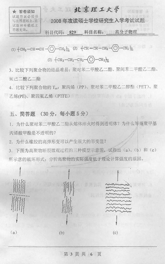2003年北京理工大学429高分子化学及高分子物理考研真题