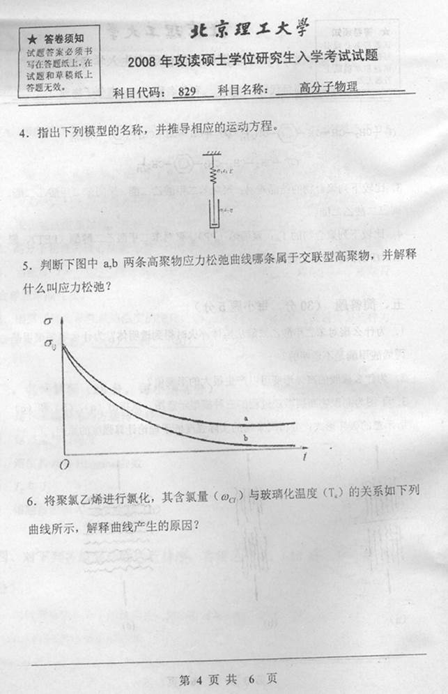 2004年北京理工大学429高分子化学及高分子物理考研真题