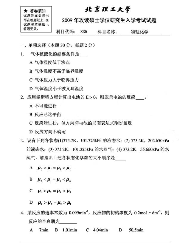 回复关键词【北京理工大学835】或【北京理工大学物理化学】