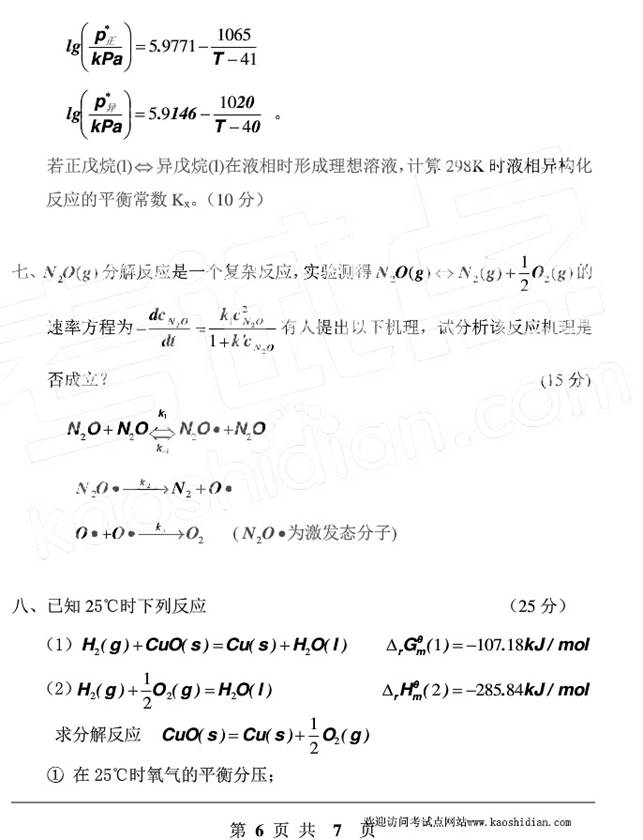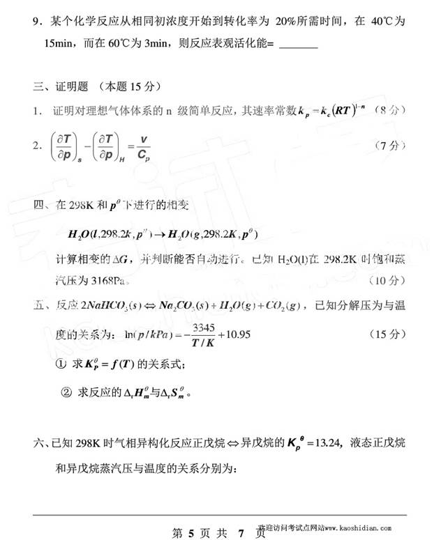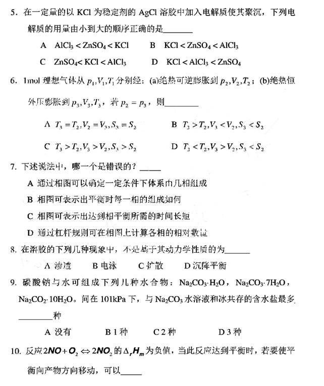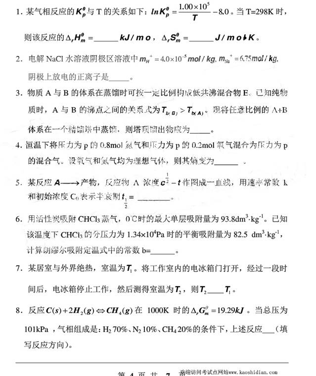 2. 全国名校物理化学考研真题汇总(含部分答案)
