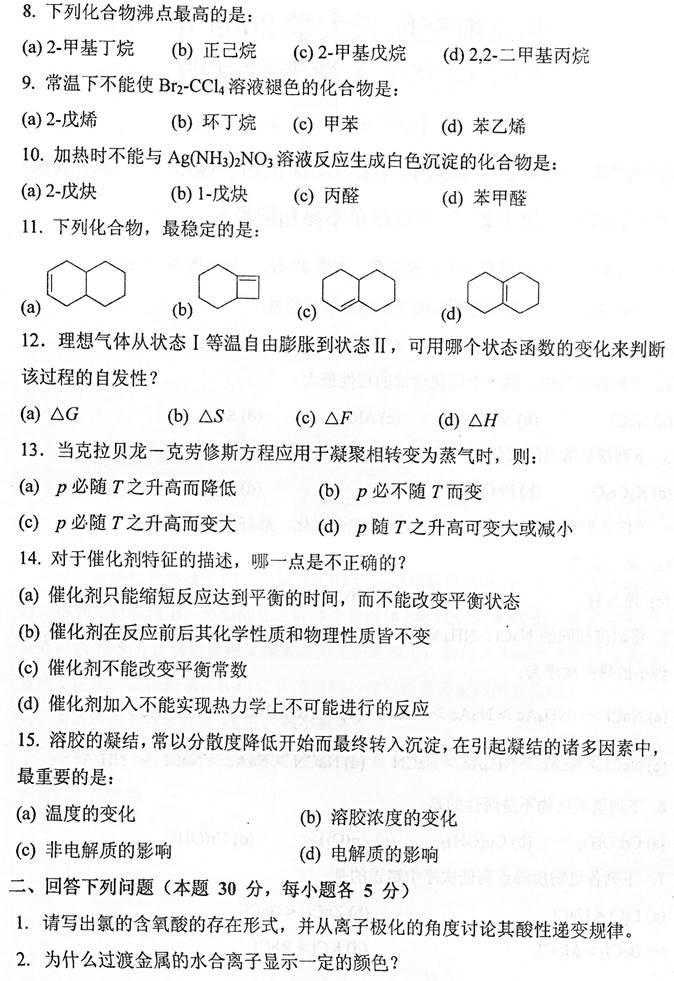 2. 全国名校物理化学考研真题汇总(含部分答案)