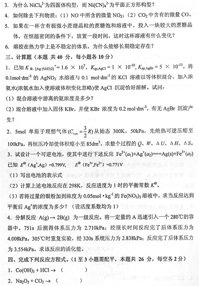 2. 全国名校物理化学考研真题汇总(含部分答案)