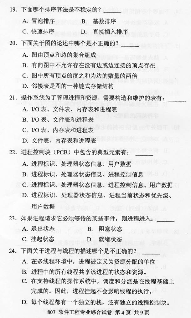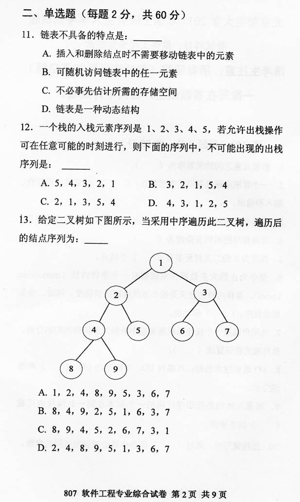 2019年北京邮电大学《807软件工程专业综合》考研真题