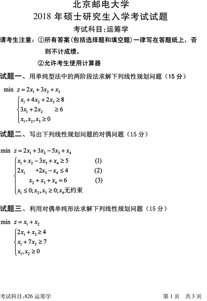 1. 北京邮电大学《826运筹学》历年考研真题汇总