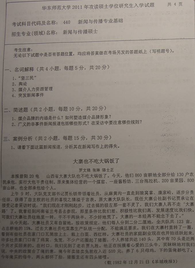 2011年华东师范大学《440新闻与传播专业基础》考研真题