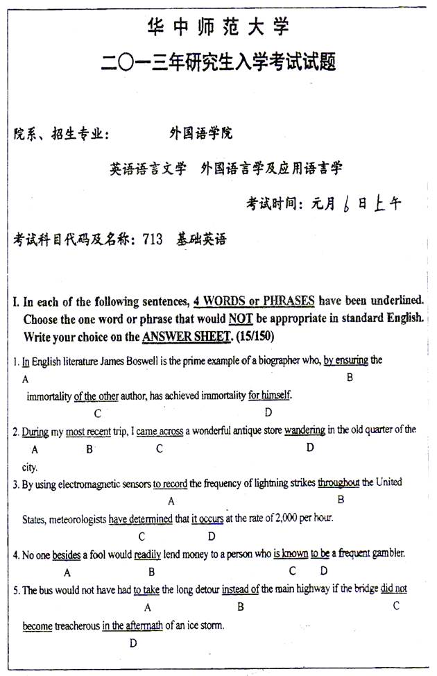 1. 华中师范大学外国语学院《713基础英语》历年考研真题汇总