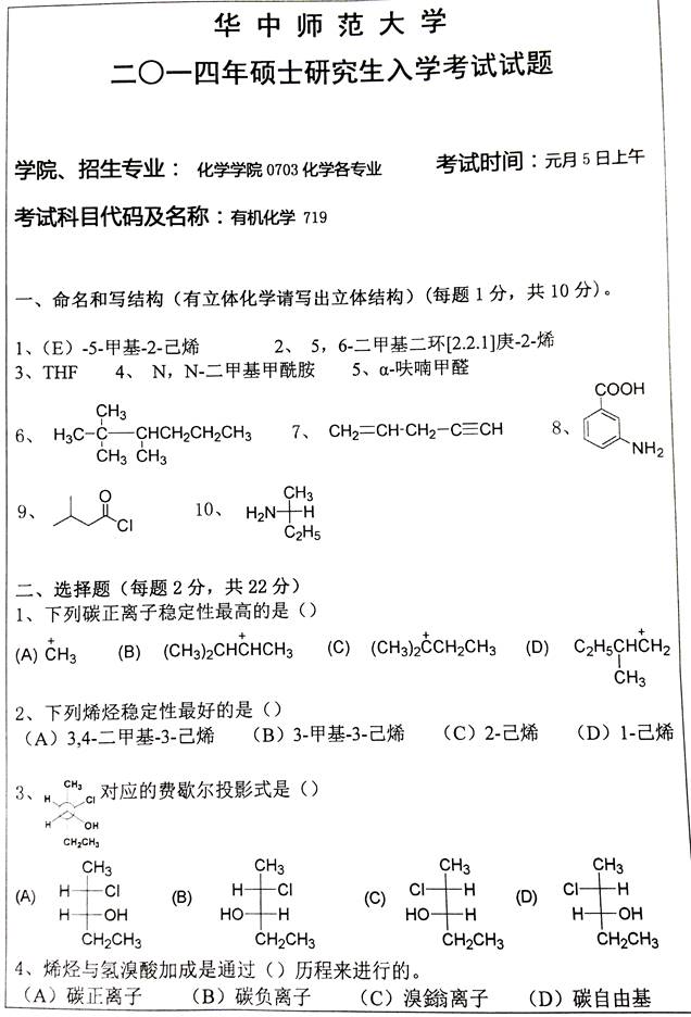 1. 华中师范大学化学学院《有机化学》历年考研真题汇总