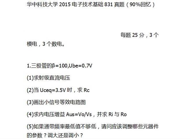 2015年华中科技大学831电子技术基础考研真题(回忆版)