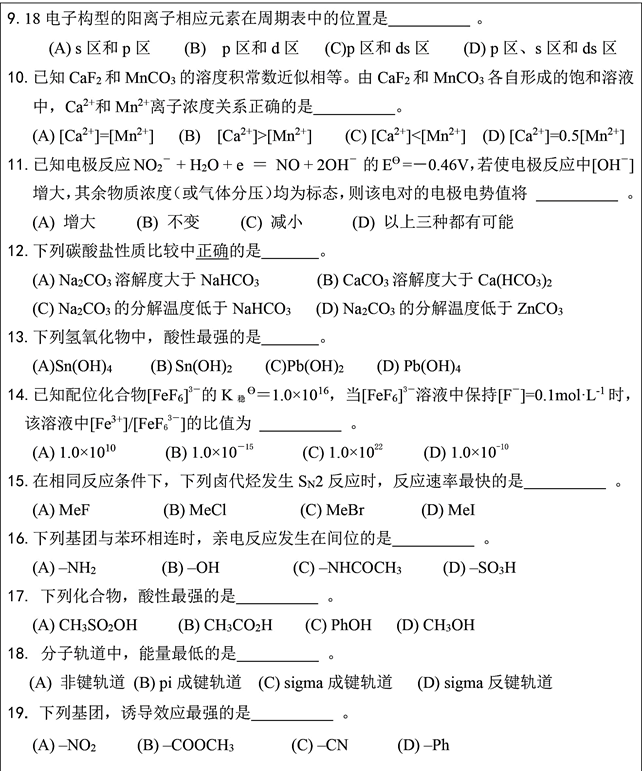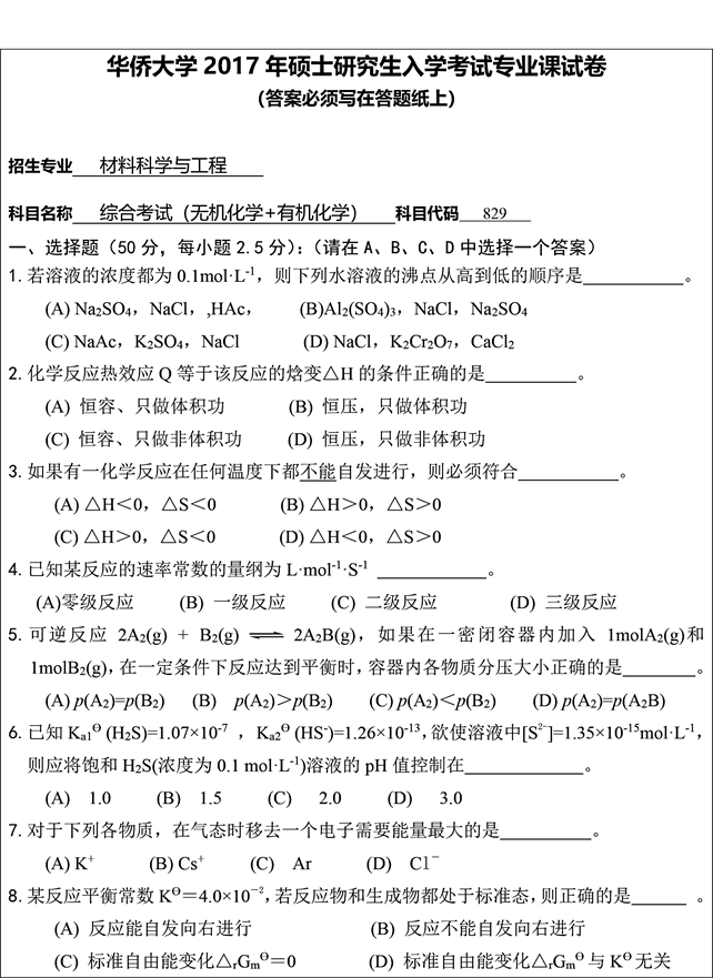 2017年华侨大学《829综合考试(无机化学+有机化学)》考研真题