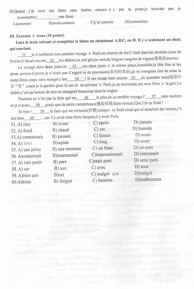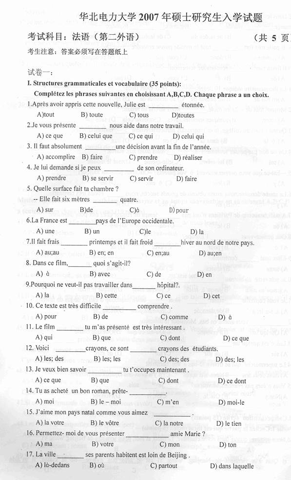 2007年华北电力大学(北京)二外(法语)考研真题