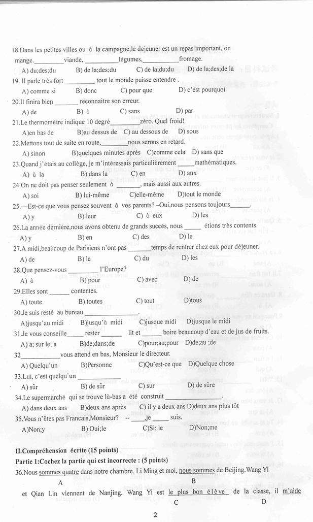 2005年华北电力大学(北京)二外(法语)考研真题