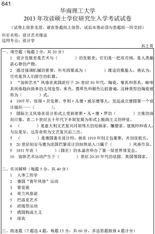 1. 华南理工大学设计学院《设计艺术理论》历年考研真题汇总