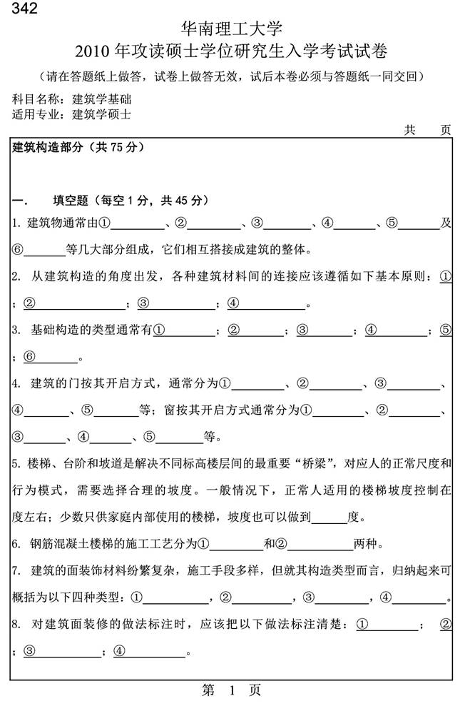 1. 华南理工大学建筑学院《355建筑学基础》历年考研真题汇总