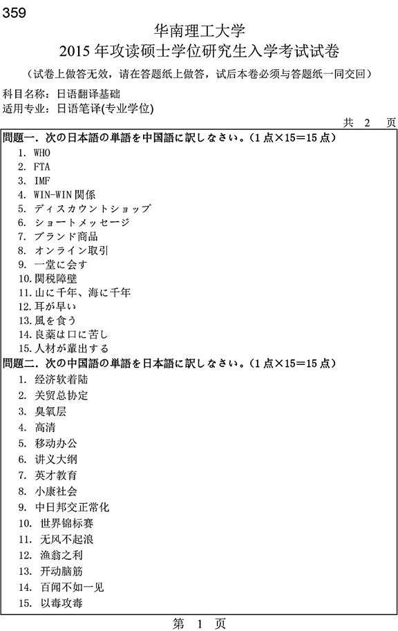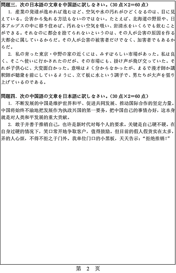 2. 全国名校翻译硕士《359日语翻译基础》考研真题