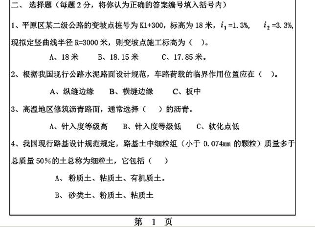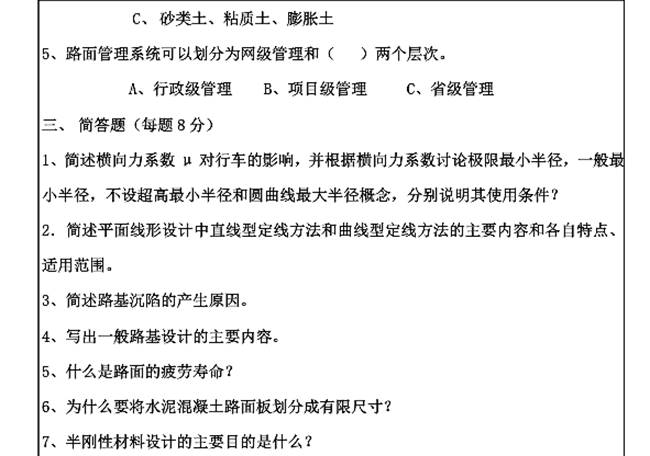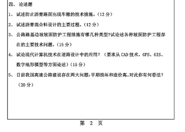 2. 全国名校道路工程(含路基路面工程)考研真题汇总(含部分答案)