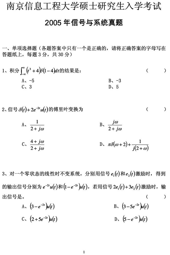 1. 南京信息工程大学《811信号与系统》历年考研真题汇总