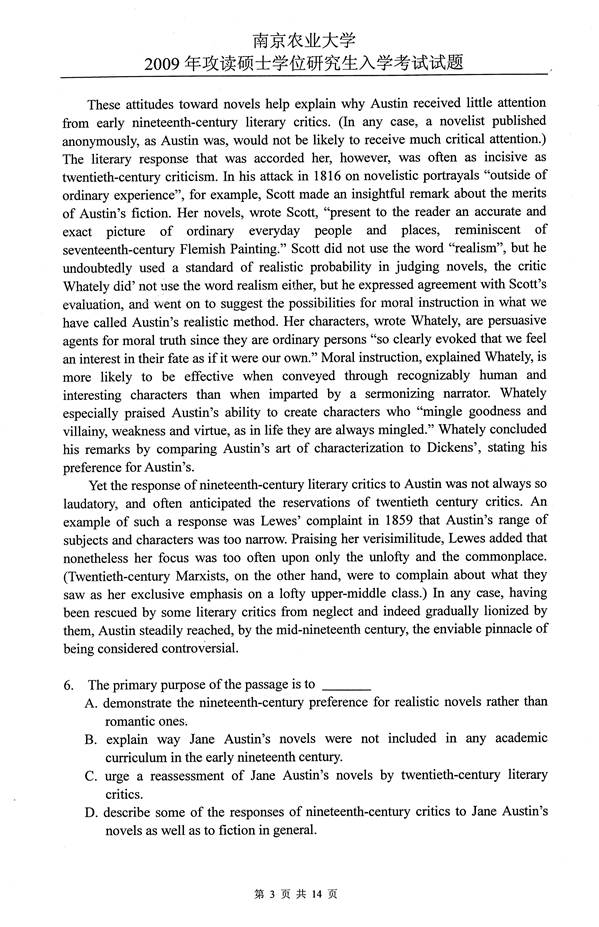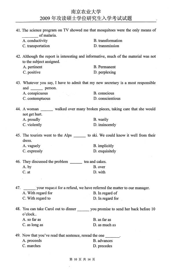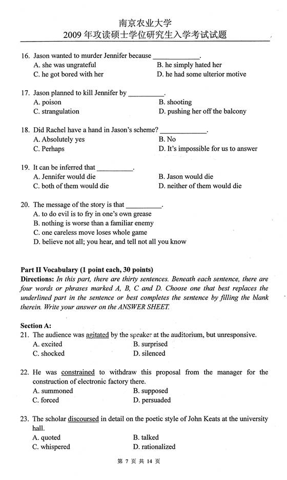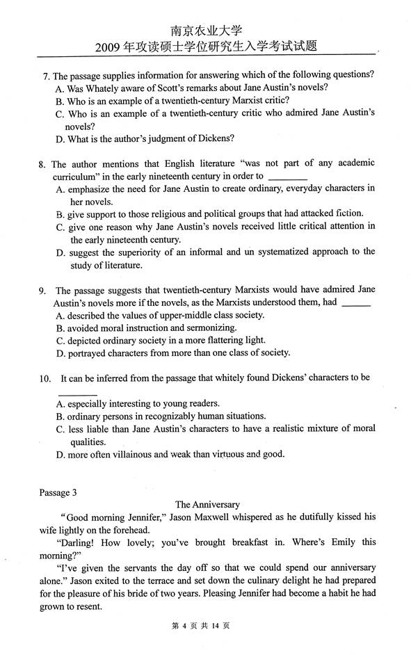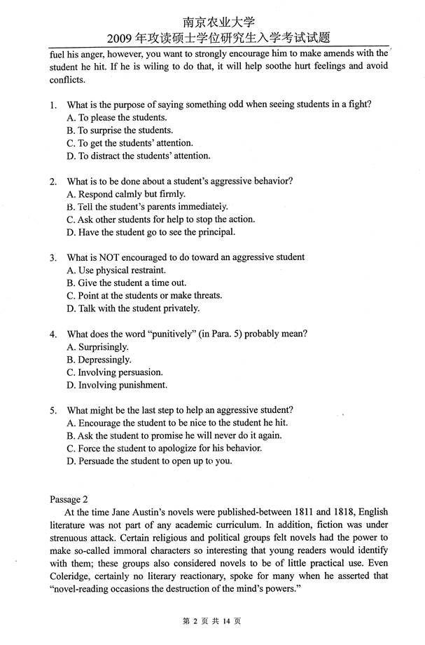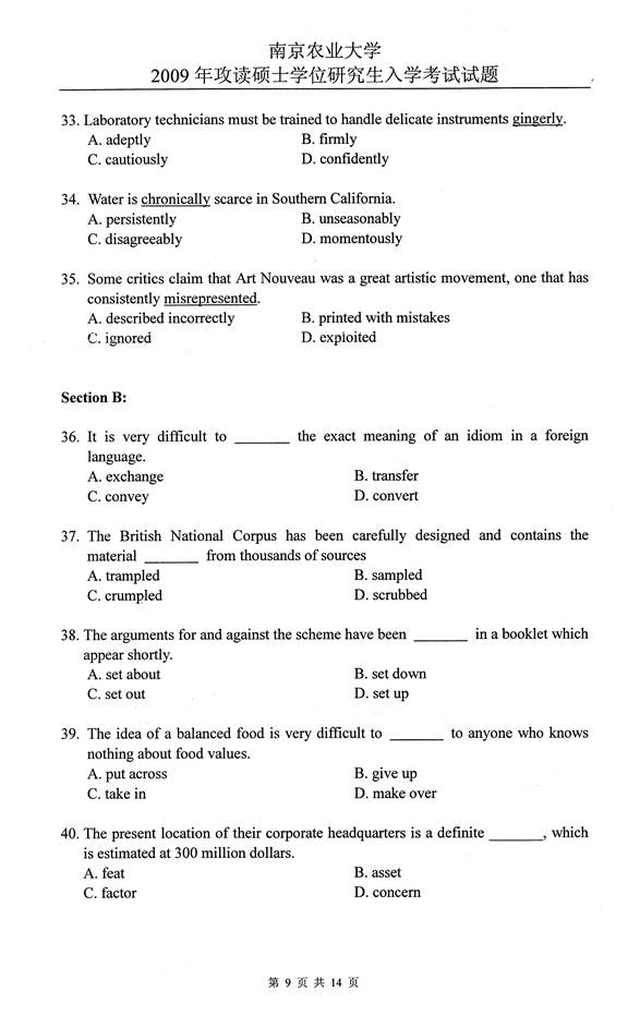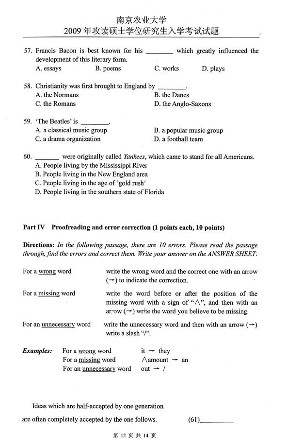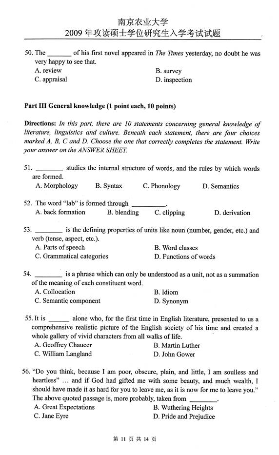2009年南京农业大学626基础英语考研真题