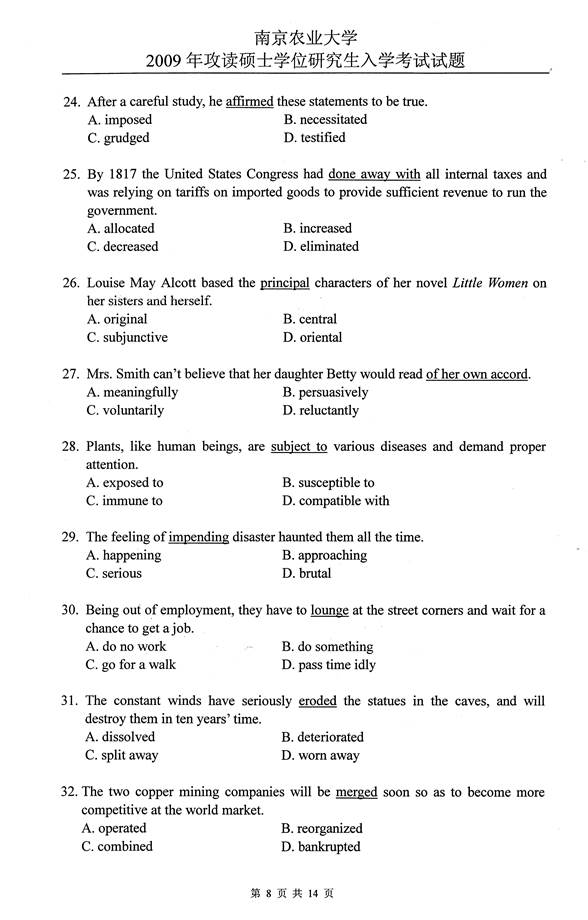 2008年南京农业大学626基础英语考研真题
