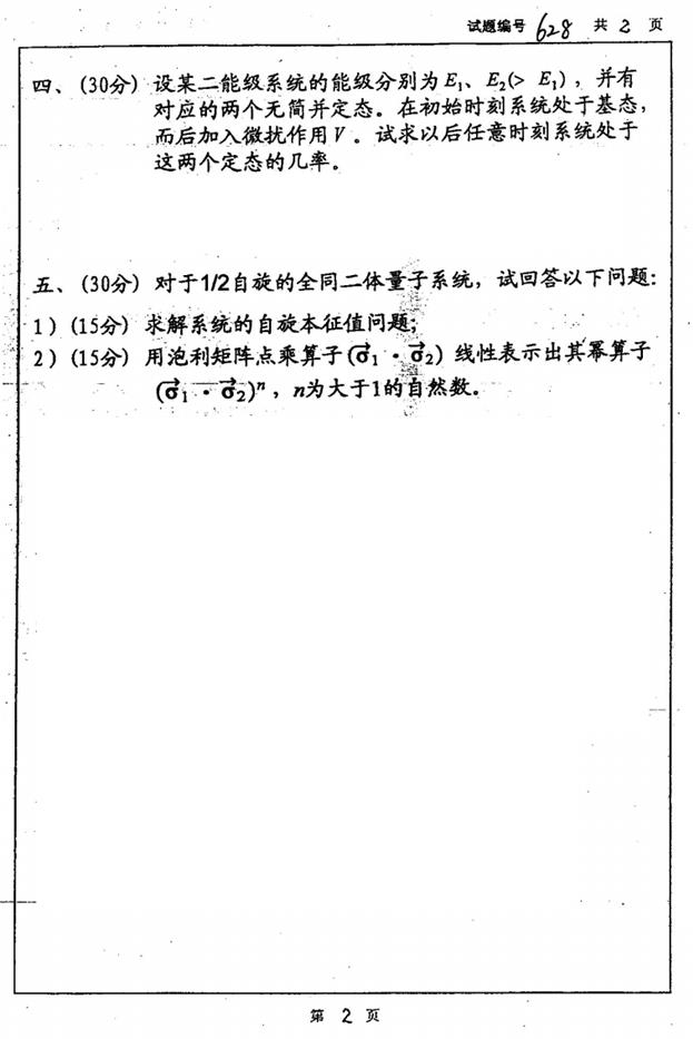 1. 南京大学物理学院《628量子力学》历年考研真题汇总