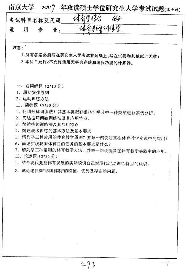 1. 南京大学体育科学研究所《664体育学综合》历年考研真题汇总