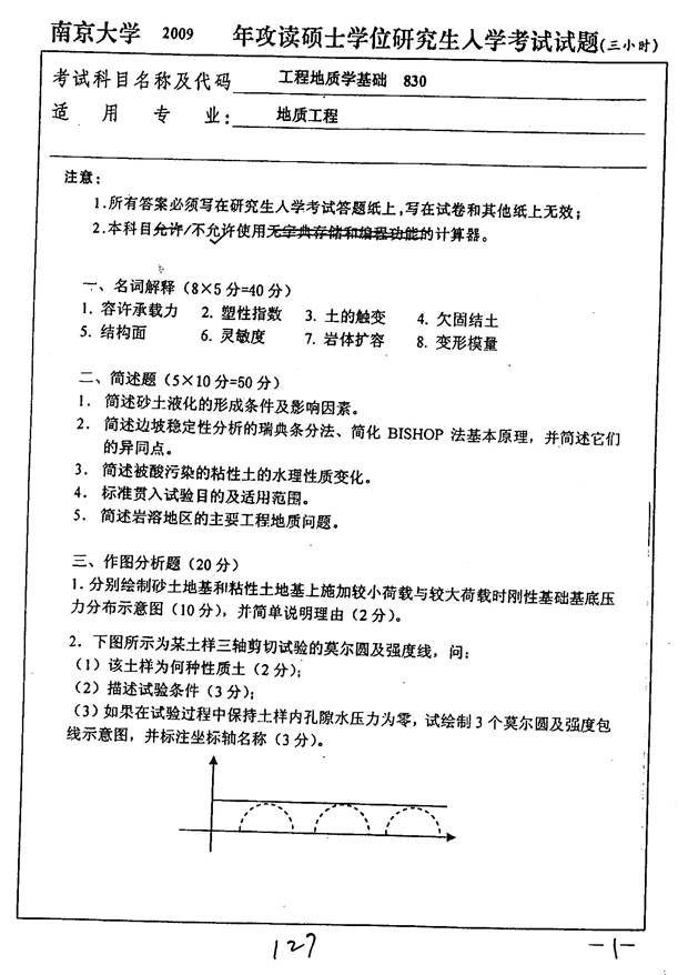 2009年南京大学地球科学与工程学院830工程地质学基础考研真题