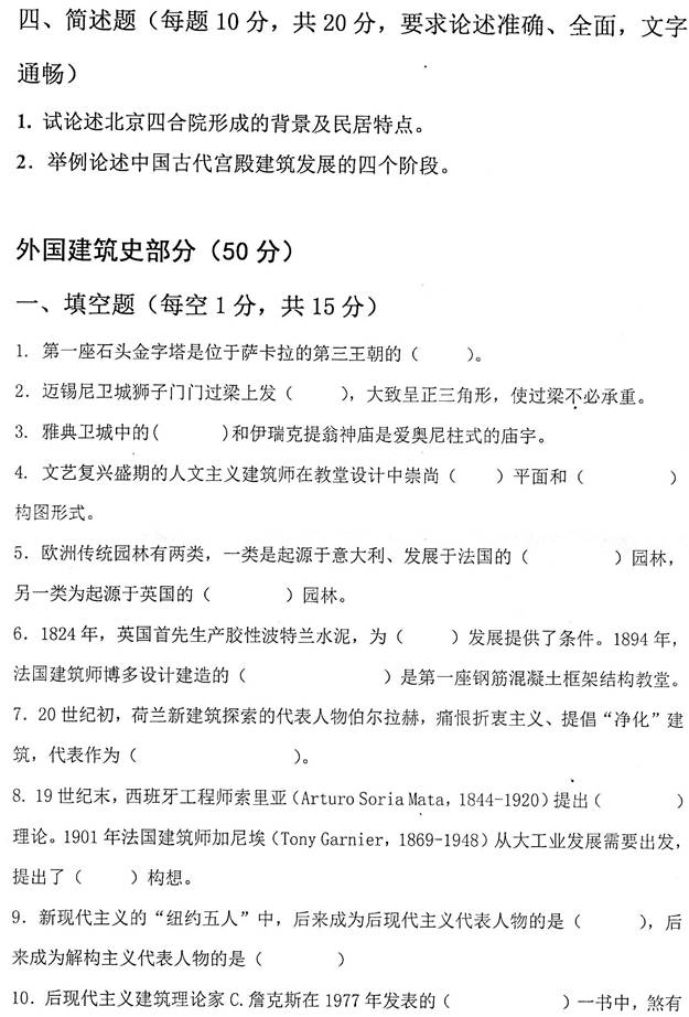 1. 全国名校外国建筑史考研真题汇总