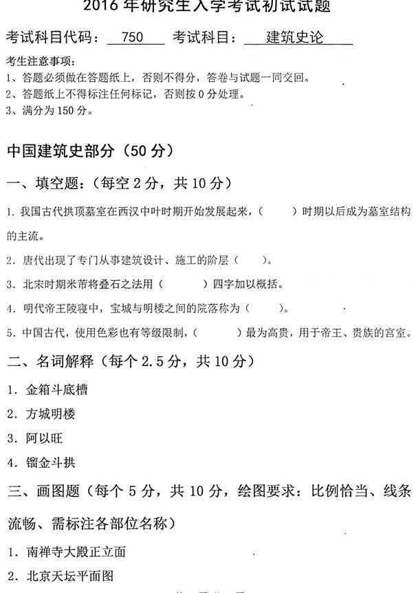 2. 全国名校中国建筑史考研真题汇总