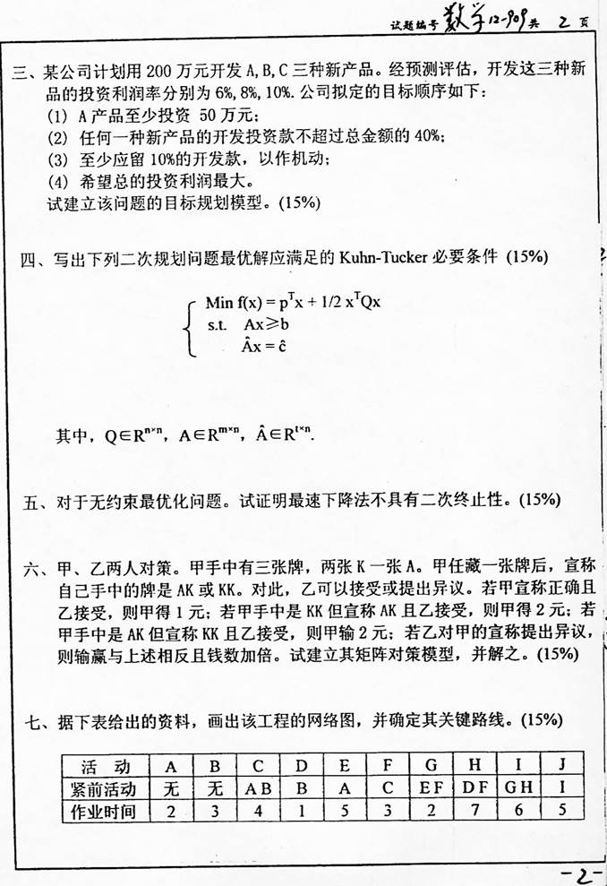 2009年南京大学922管理与运筹学基础考研真题