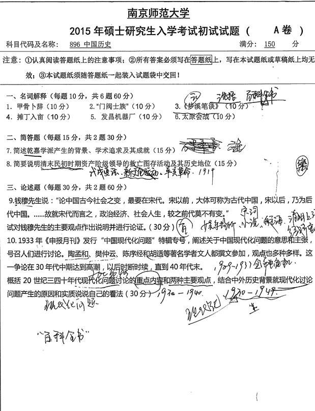 1. 南京师范大学教师教育学院《中国历史》[专业硕士]历年考研真题汇总