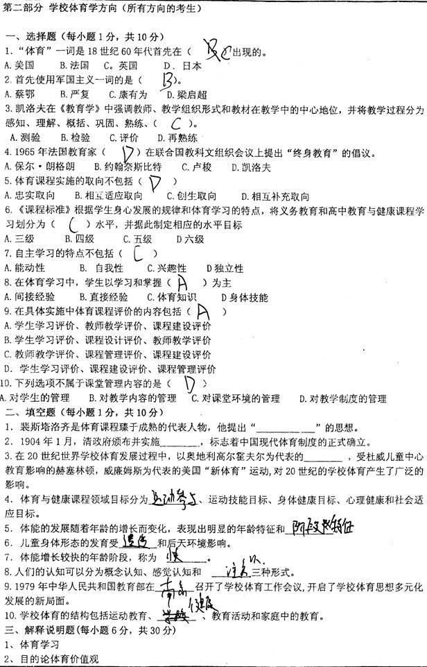 2. [电子书]全国名校体育基础综合考研真题汇总
