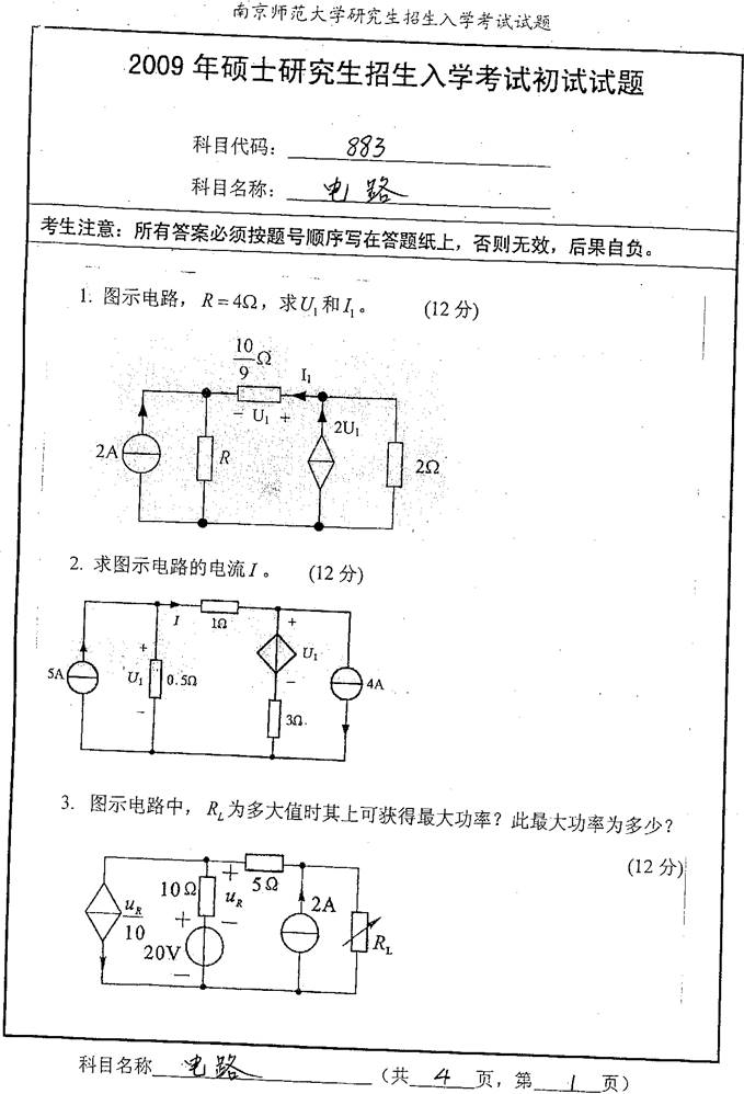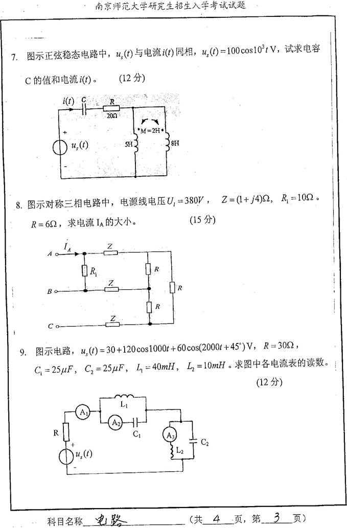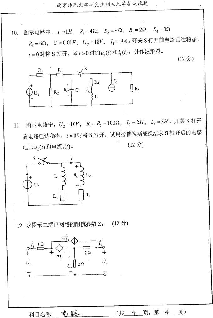 1. 南京师范大学电气与自动化工程学院《电路》历年考研真题汇总