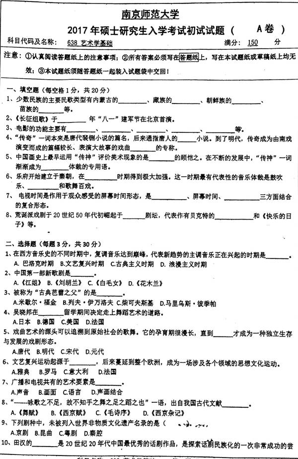 1. 南京师范大学音乐学院《艺术学基础》[专业硕士]历年考研真题汇总