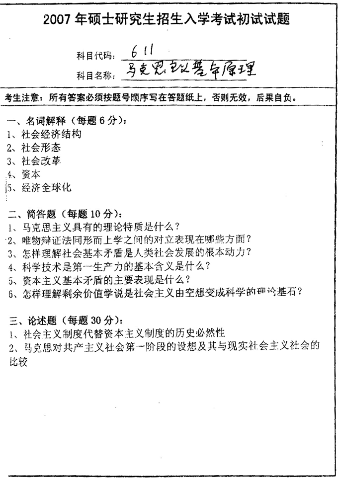 2007年南京师范大学《611马克思主义基本原理》考研真题