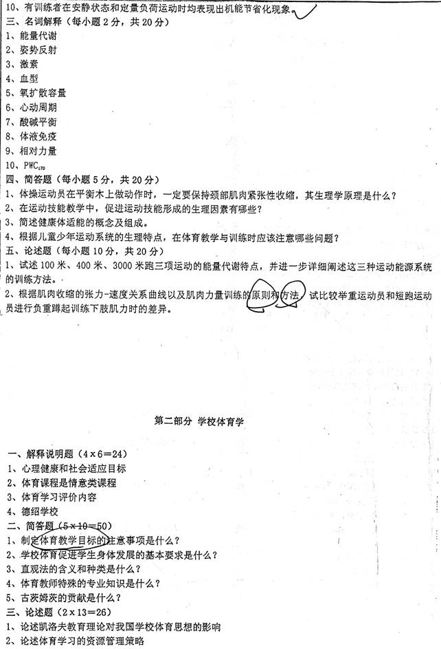 2. 全国名校体育硕士《346体育综合》考研真题汇总