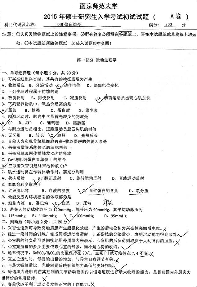 2015年南京师范大学《346体育综合》考研真题