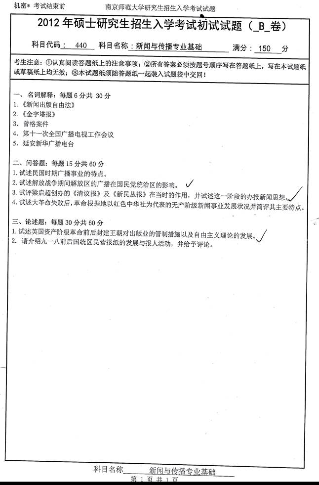1. [电子书]南京师范大学新闻与传播学院《440新闻与传播专业基础》历年考研真题汇总
