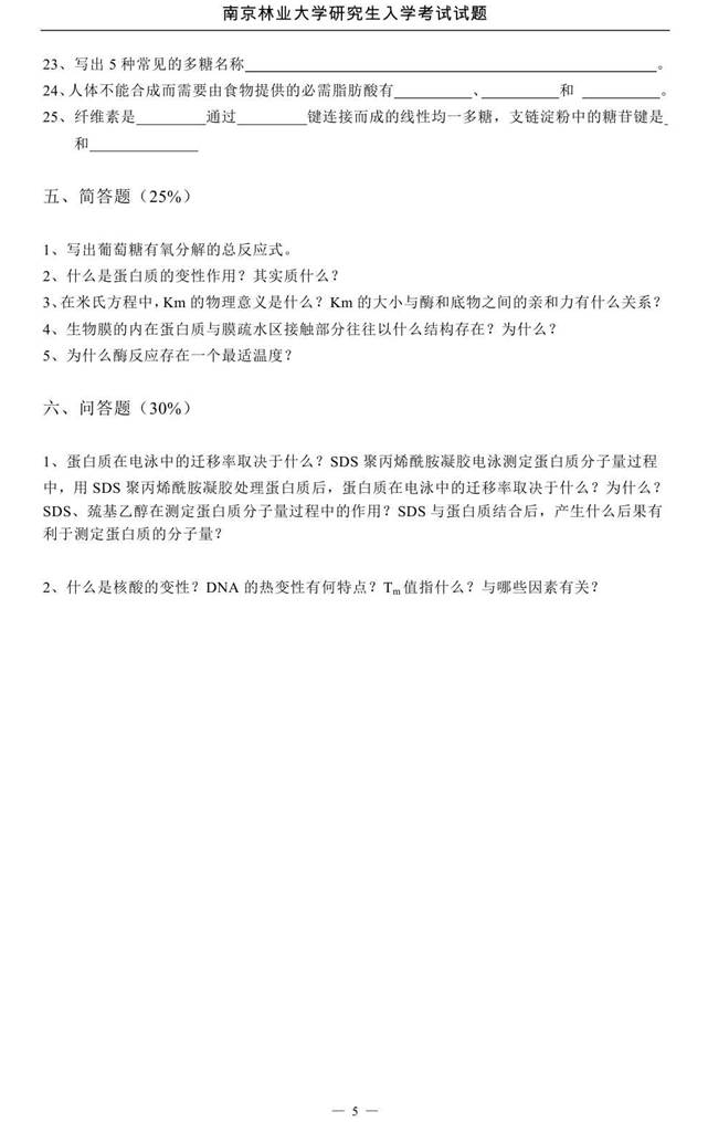1. 南京林业大学《826生物化学与分子生物学》历年考研真题汇总