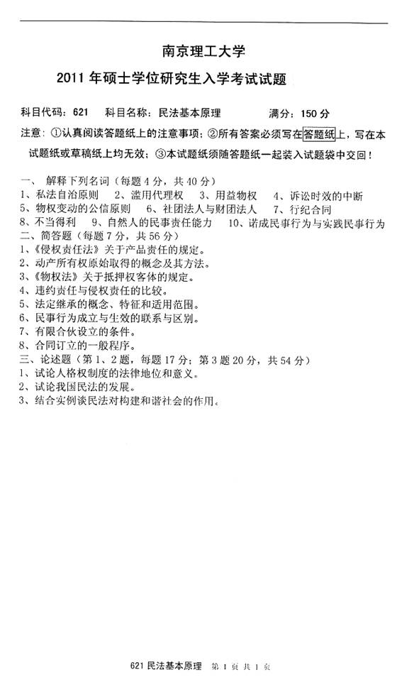 1. 南京理工大学知识产权学院《621法理学》历年考研真题汇总