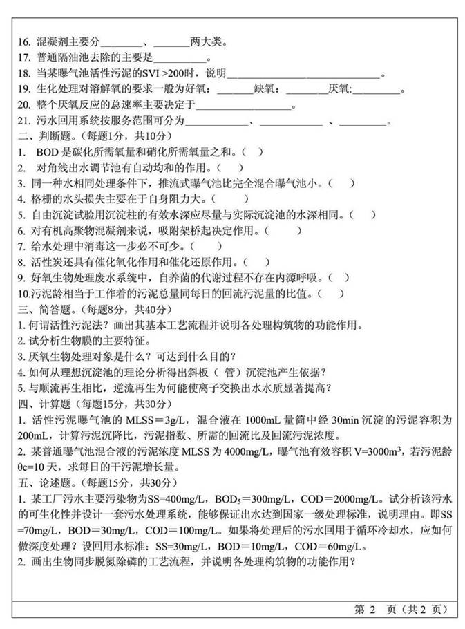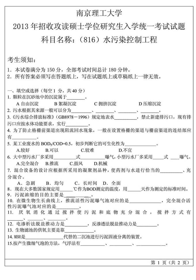 1. 南京理工大学环境与生物工程学院《816水污染控制工程》历年考研真题汇总