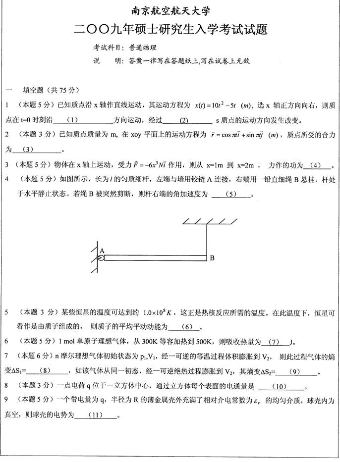 2009年南京航空航天大学811普通物理考研真题