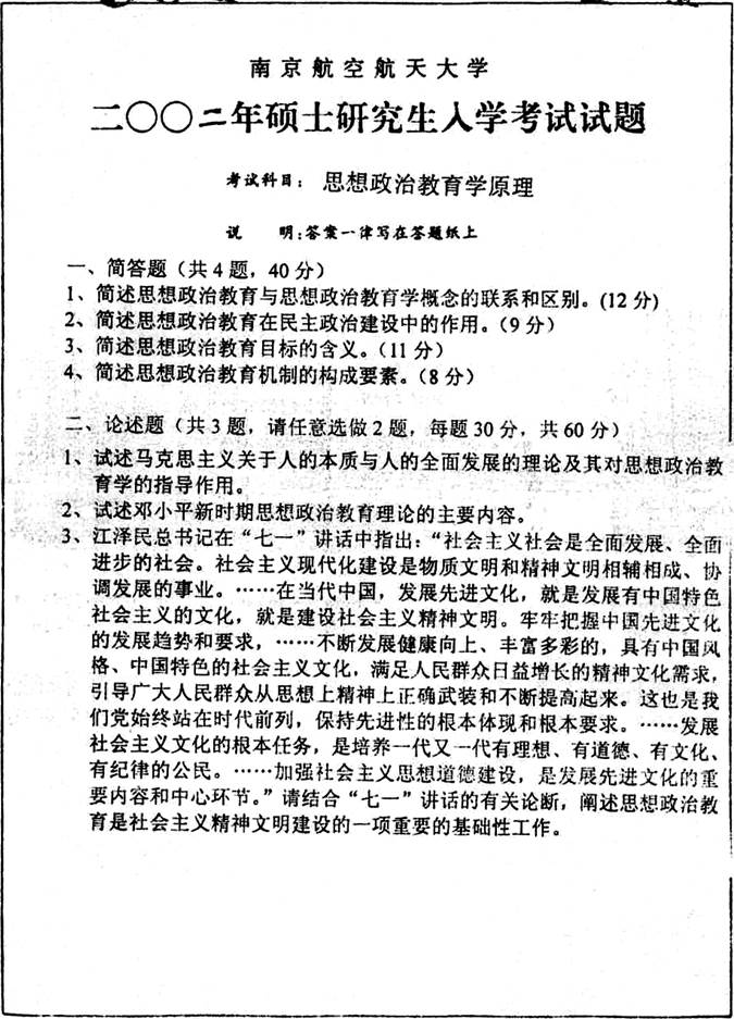 2007年南京航空航天大学思想政治教育学考研真题及答案